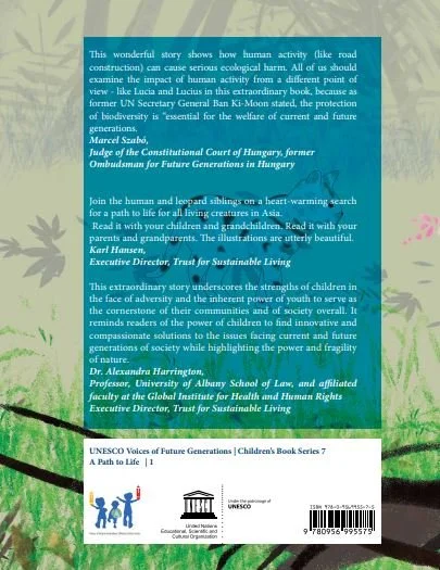 At first glance this is a lovely story about the friendship between children and young leopard cats who happen to be in the same situation, showing how children can understand animals and become their friends because they do not threaten them. But the story also raises major environmental issues. Through the account of the leopard cats, we are alerted to the way in which human exploitation of nature puts species in danger and leads to loss of biological diversity.
