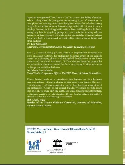 Dream Catcher leads us to experience how humans are now harming innocent animals without a chance to stay away from danger. The story reminds readers of bioaccumulation in the heartbreaking confession of the protagonist “A-tian" to her animal friends. We should be fully aware that, after all, we share only one earth, and while focusing on just profiting, we humans create a no-win situation. Dream Catcher reflects the author's utmost care for the surrounding environment.